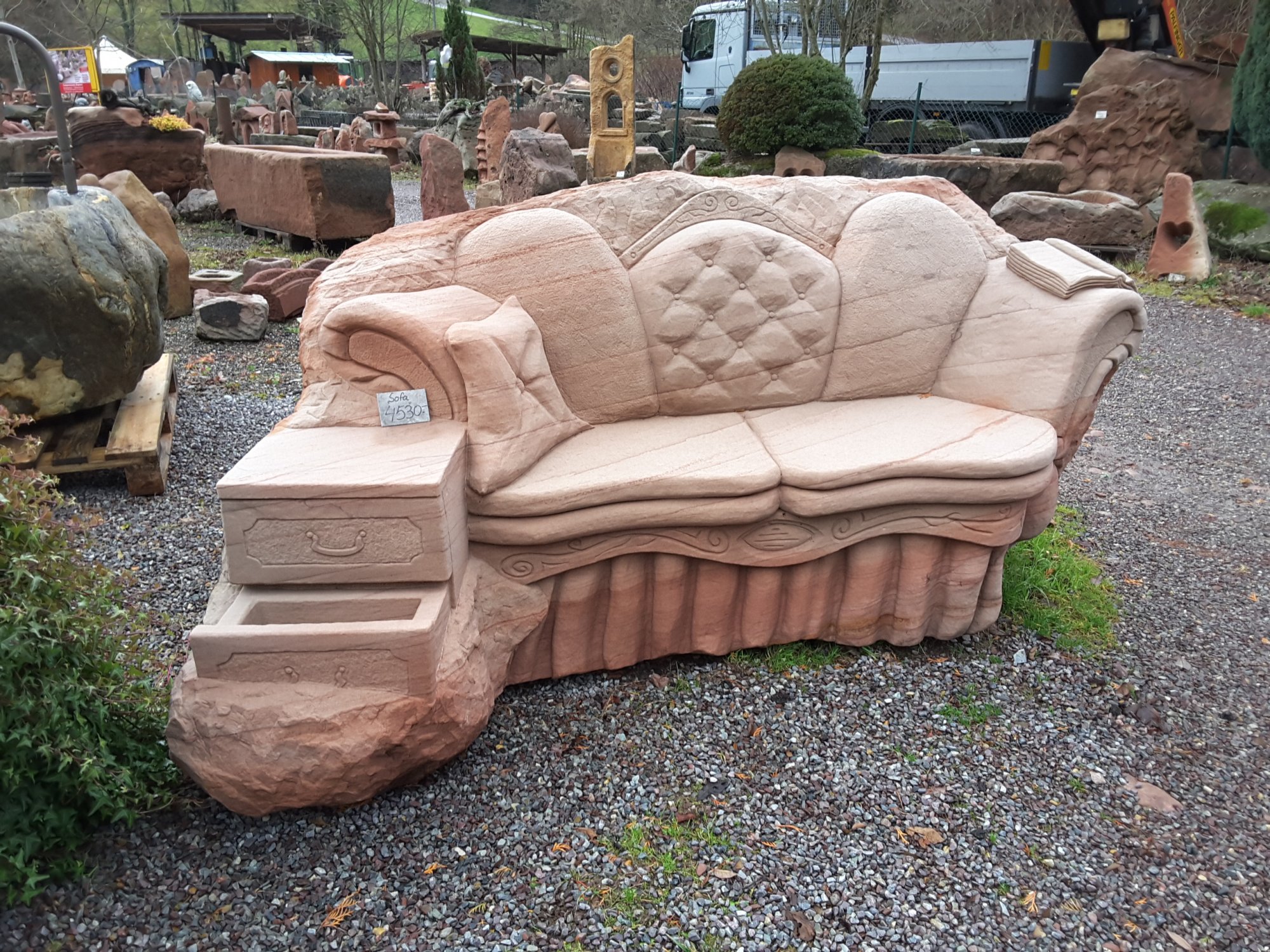 Einzigartige Möbelstücke aus Sandstein schaffen in jedem Garten ein charakteristisches Ambiente